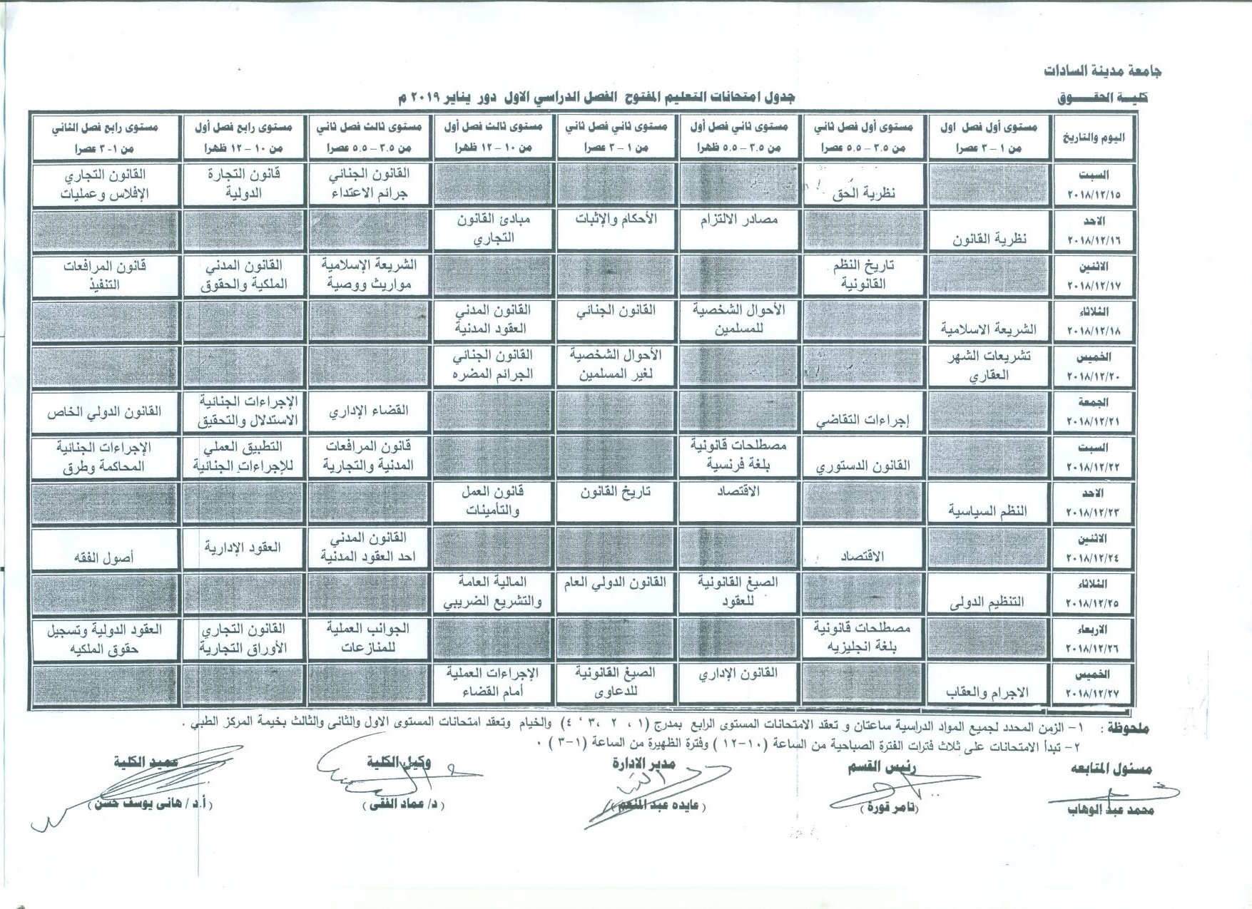 نعلن جدول امتحانات حقوق عين شمس الترم الاول 2019 2020 كامل بالصور